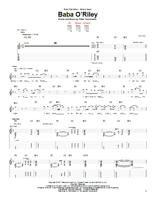 Quick facts Baba O'Riley about digital sheet music