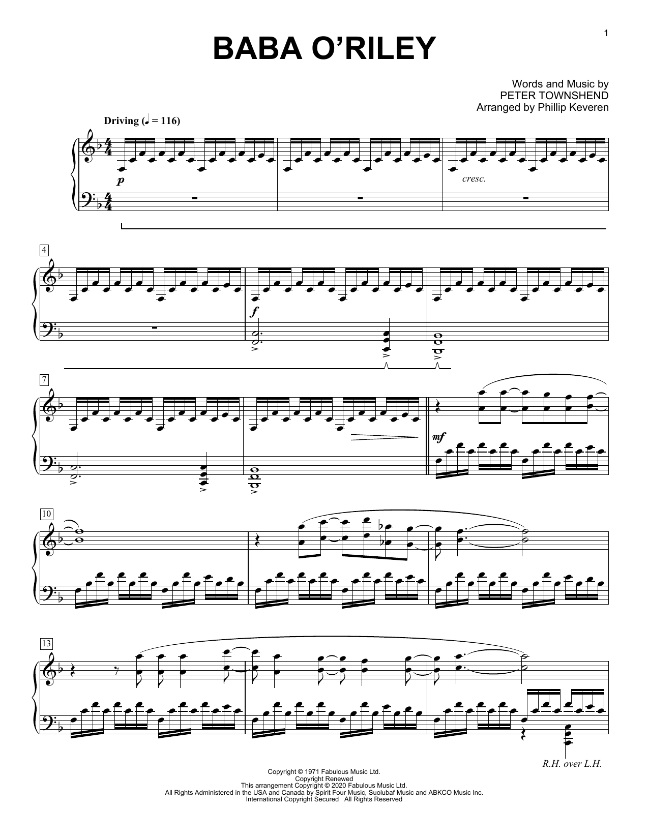 Download or print The Who Baba O'Riley [Classical version] (arr. Phillip Keveren) sheet music, chords and digital score arranged for Piano Solo. This Rock score includes 5 page(s).