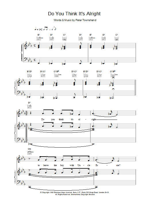 Download or print The Who Do You Think It's Alright sheet music, chords and digital score arranged for Piano, Vocal & Guitar Chords. This Musical/Show score includes 3 page(s).