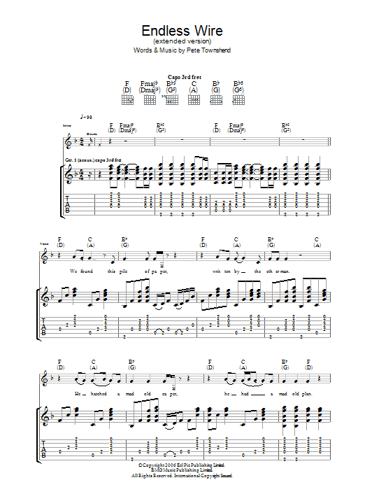 Download or print The Who Endless Wire (Extended Version) sheet music, chords and digital score arranged for Guitar Tab. This Rock score includes 4 page(s).