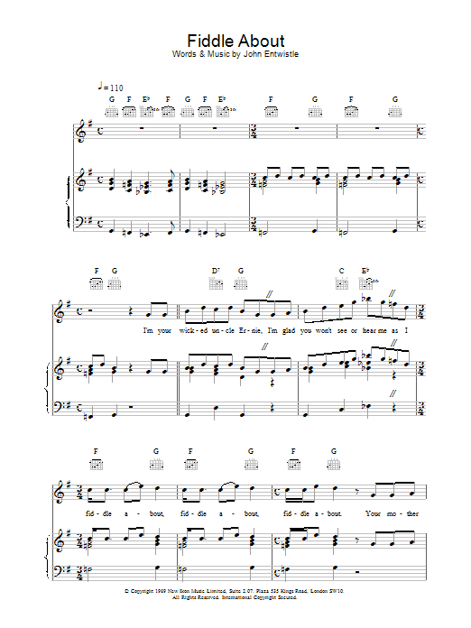 Download or print The Who Fiddle About sheet music, chords and digital score arranged for Piano, Vocal & Guitar Chords. This Rock score includes 3 page(s).