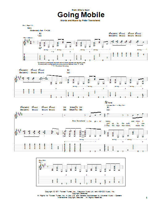 Download or print The Who Going Mobile sheet music, chords and digital score arranged for Piano, Vocal & Guitar Chords (Right-Hand Melody). This Pop score includes 4 page(s).