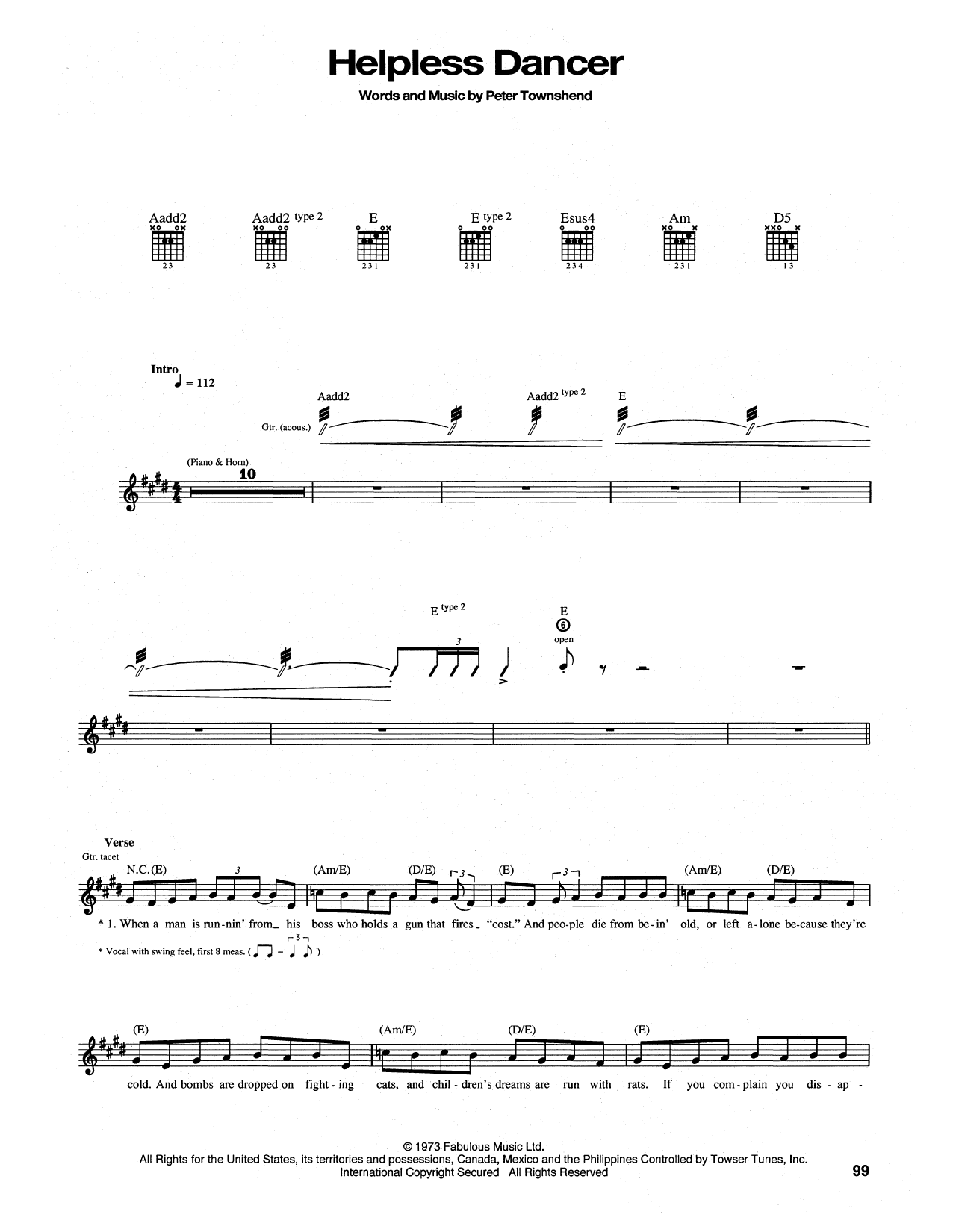 Download or print The Who Helpless Dancer sheet music, chords and digital score arranged for Guitar Tab. This Pop score includes 2 page(s).