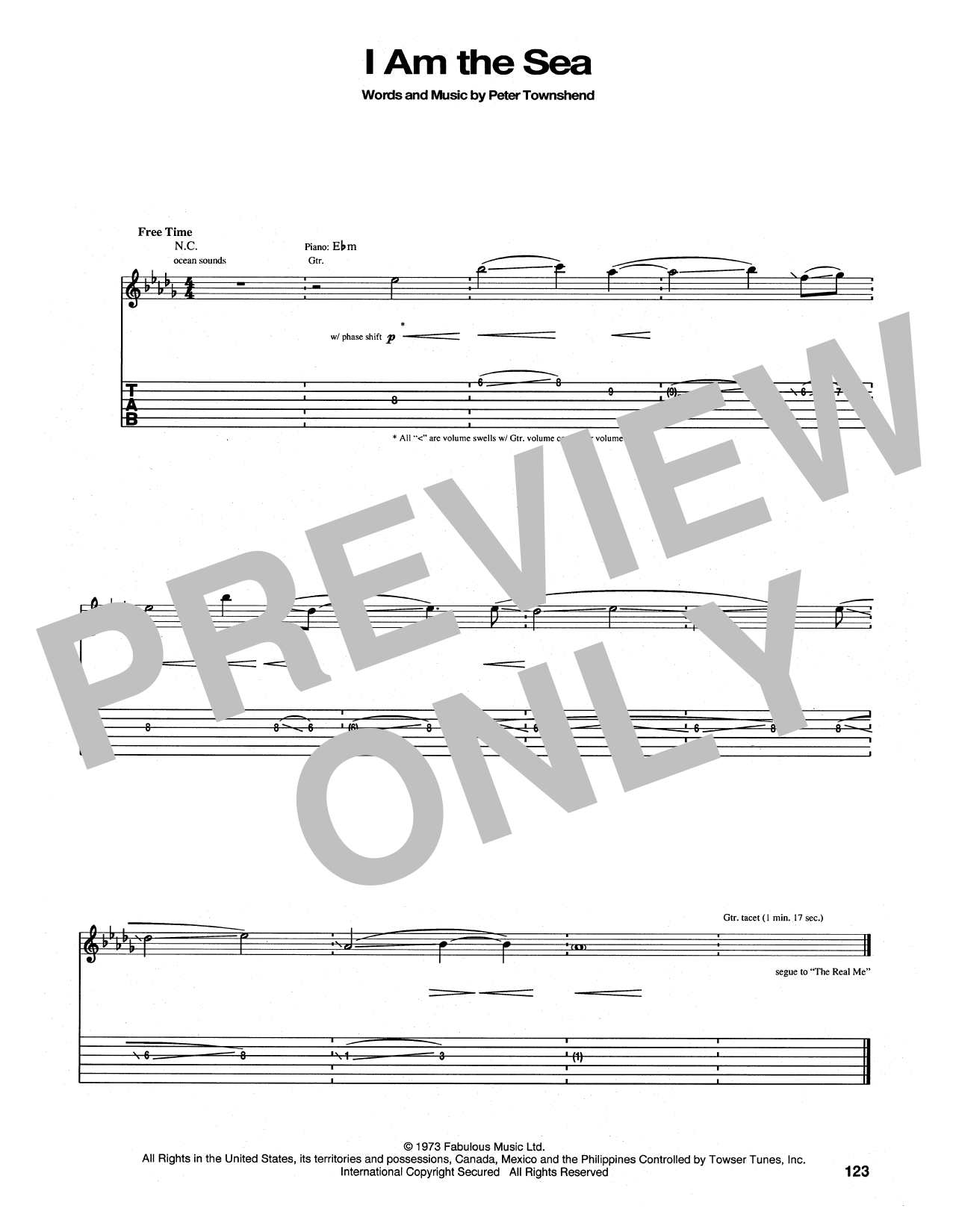 Download or print The Who I Am The Sea sheet music, chords and digital score arranged for Guitar Tab. This Pop score includes 1 page(s).