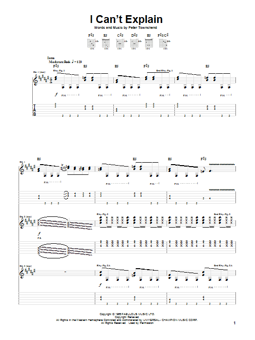 Download or print The Who I Can't Explain sheet music, chords and digital score arranged for Guitar Tab. This Metal score includes 10 page(s).