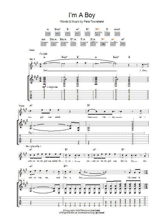 Download or print The Who I'm A Boy sheet music, chords and digital score arranged for Guitar Chords/Lyrics. This Rock score includes 2 page(s).