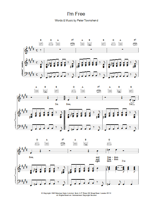 This composition is beautifuly arranged for Piano, Vocal & Guitar (Right-Hand Melody) includes 5 page(s). It is performed by The Who. The style of the score is 'Pop'. Catalog SKU number of the notation is 70677.