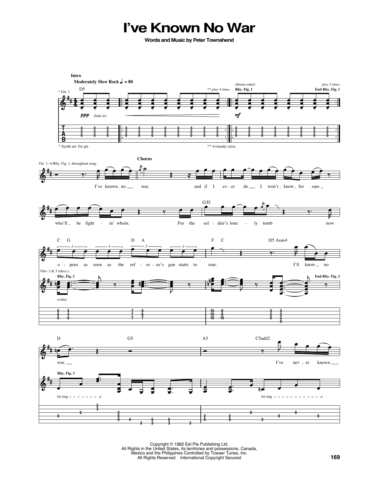 Download or print The Who I've Known No War sheet music, chords and digital score arranged for Guitar Tab. This Pop score includes 6 page(s).