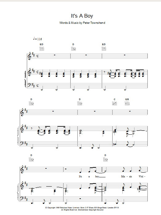 Download or print The Who It's A Boy sheet music, chords and digital score arranged for Guitar Tab. This Pop score includes 6 page(s).