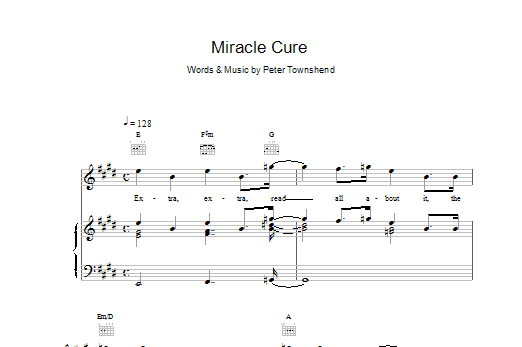 Download or print The Who Miracle Cure sheet music, chords and digital score arranged for Piano, Vocal & Guitar Chords. This Rock score includes 1 page(s).