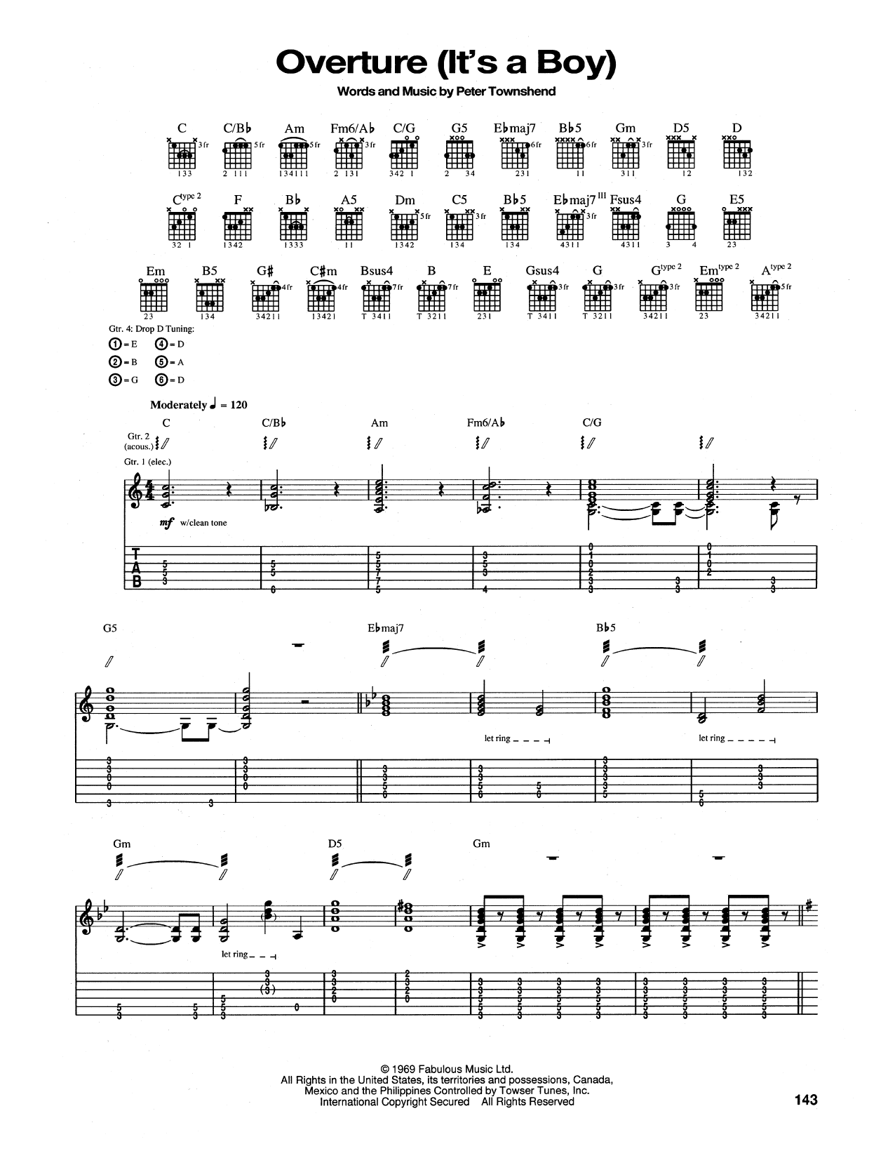 Download or print The Who Overture (It's A Boy) sheet music, chords and digital score arranged for Guitar Tab. This Pop score includes 9 page(s).