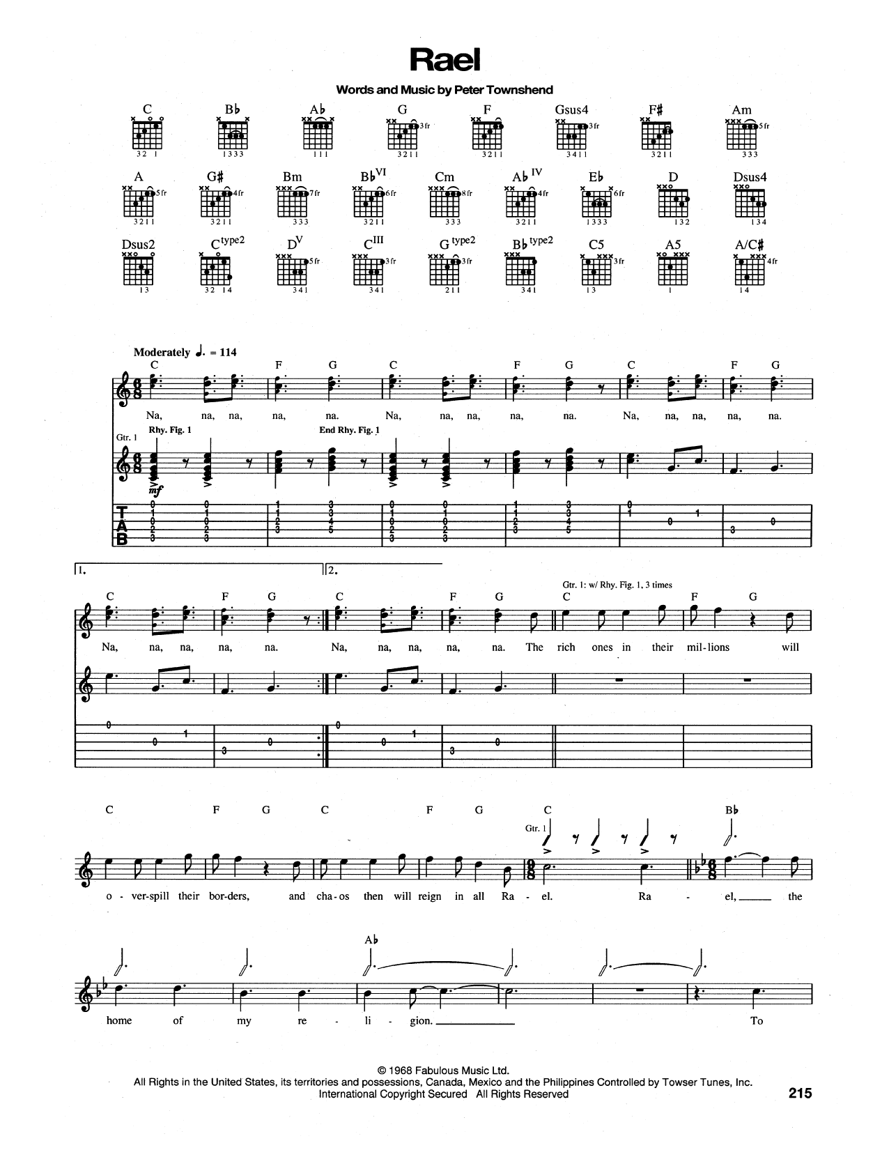 Download or print The Who Rael sheet music, chords and digital score arranged for Guitar Tab. This Pop score includes 5 page(s).