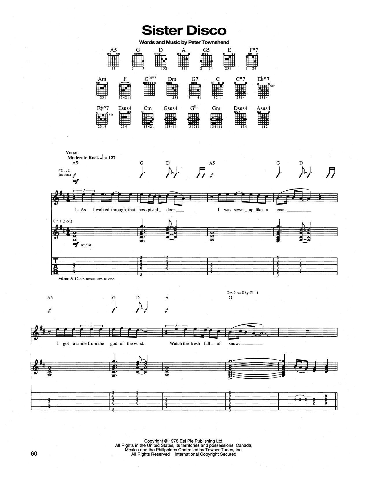 Download or print The Who Sister Disco sheet music, chords and digital score arranged for Guitar Tab. This Pop score includes 6 page(s).