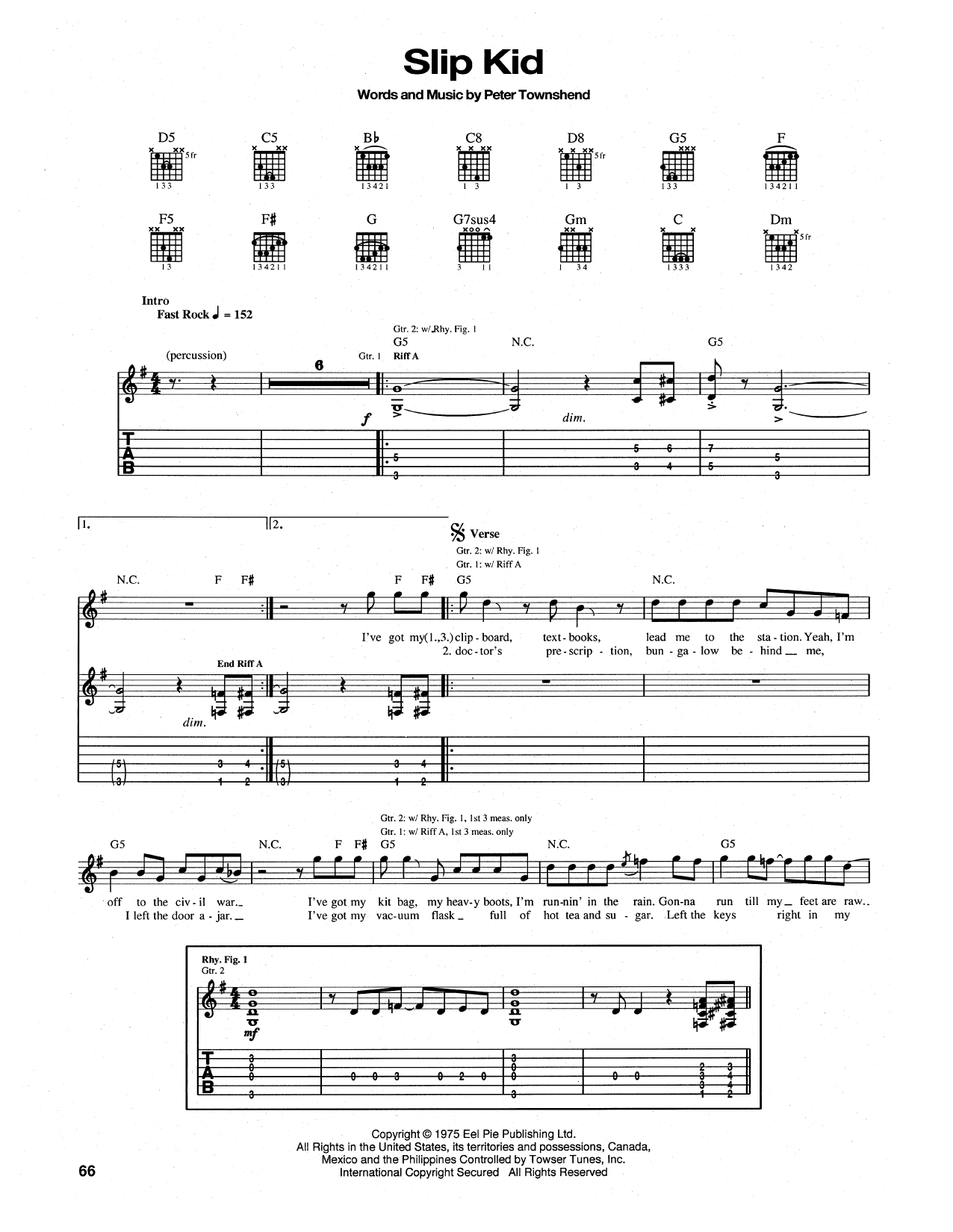 Download or print The Who Slip Kid sheet music, chords and digital score arranged for Piano, Vocal & Guitar Chords (Right-Hand Melody). This Rock score includes 5 page(s).