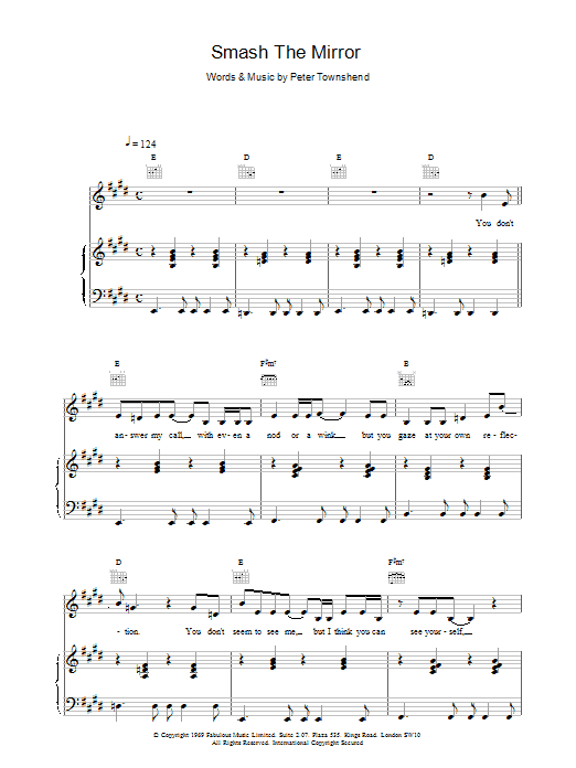 Download or print The Who Smash The Mirror sheet music, chords and digital score arranged for Guitar Tab. This Pop score includes 3 page(s).