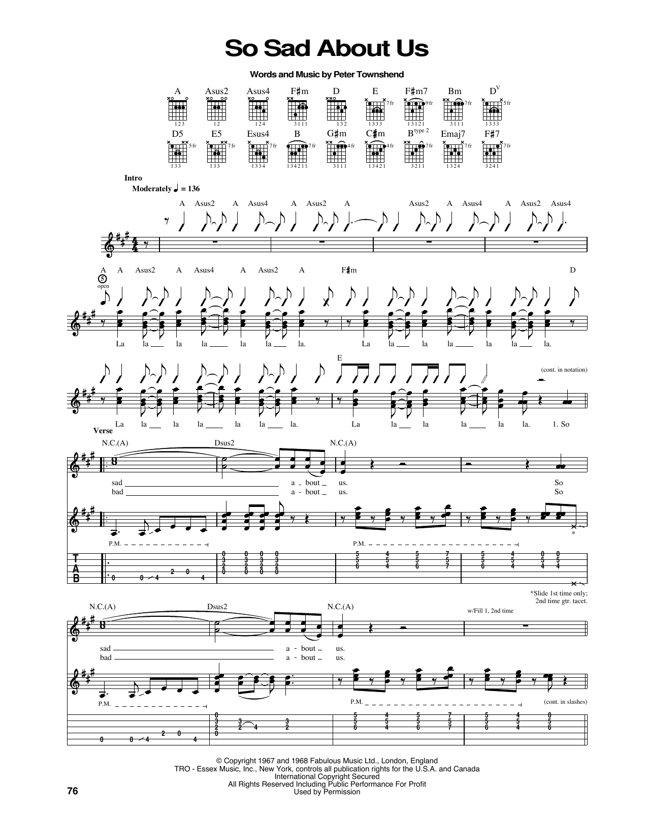 Download or print The Who So Sad About Us sheet music, chords and digital score arranged for Guitar Tab. This Pop score includes 4 page(s).