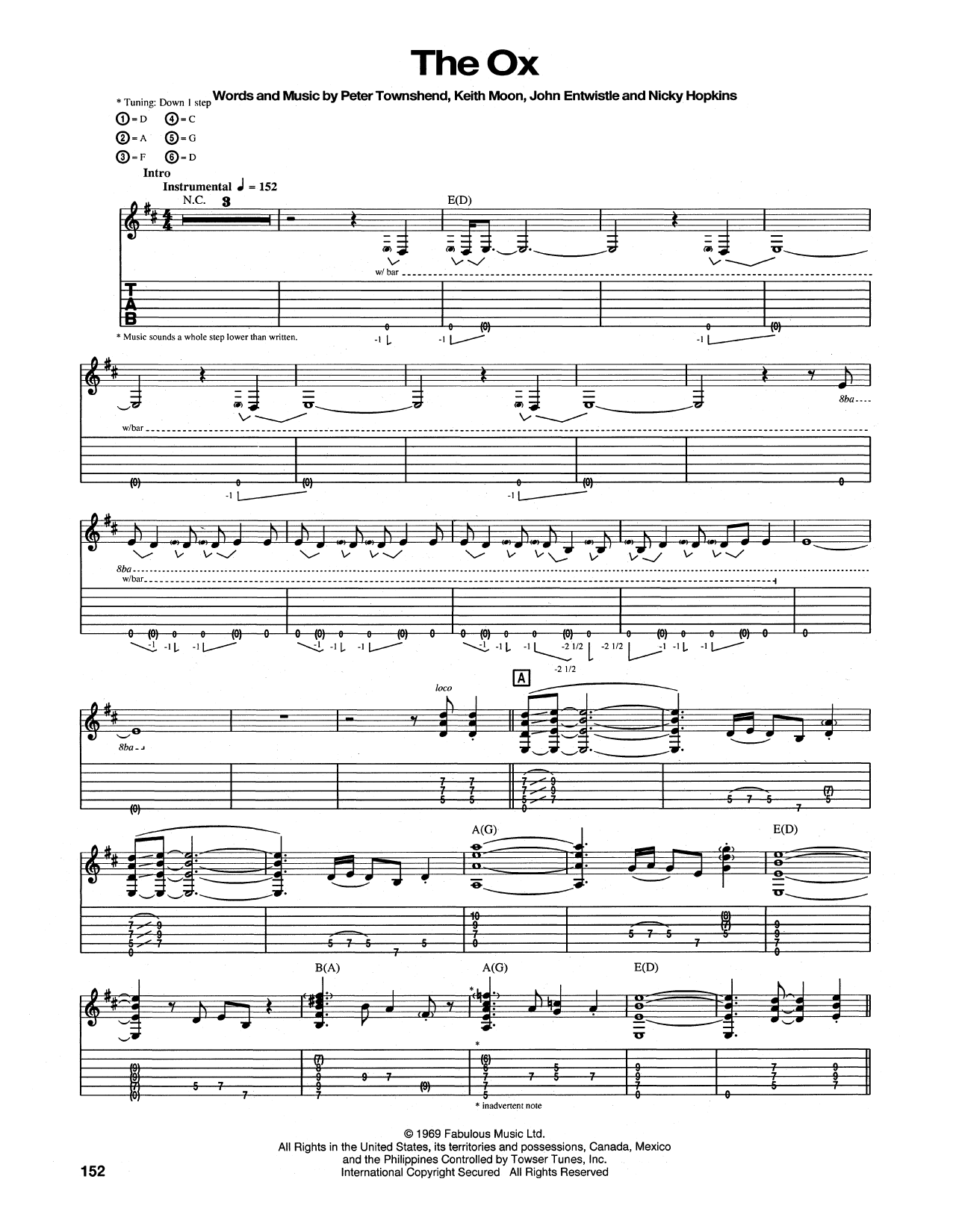 Download or print The Who The Ox sheet music, chords and digital score arranged for Guitar Tab. This Pop score includes 4 page(s).