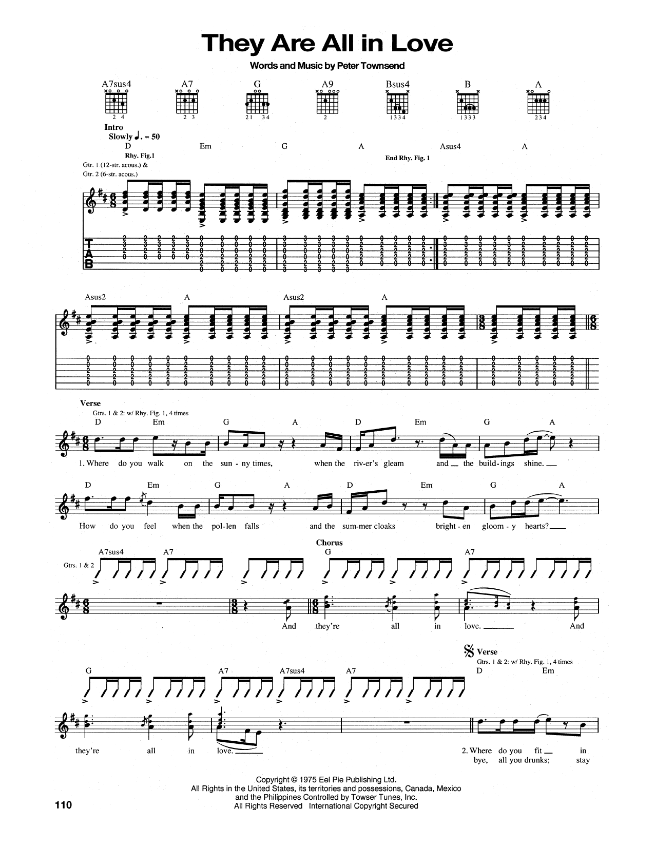 Download or print The Who They Are All In Love sheet music, chords and digital score arranged for Guitar Tab. This Pop score includes 3 page(s).
