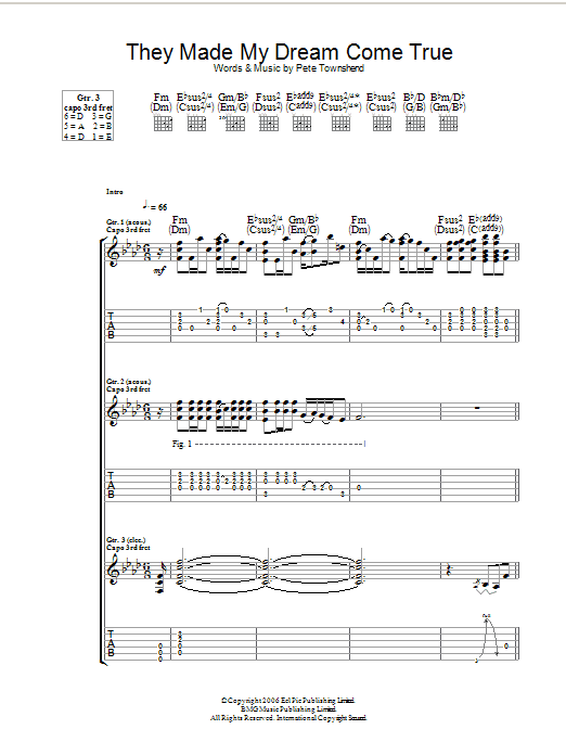 Download or print The Who They Made My Dream Come True sheet music, chords and digital score arranged for Guitar Tab. This Rock score includes 3 page(s).