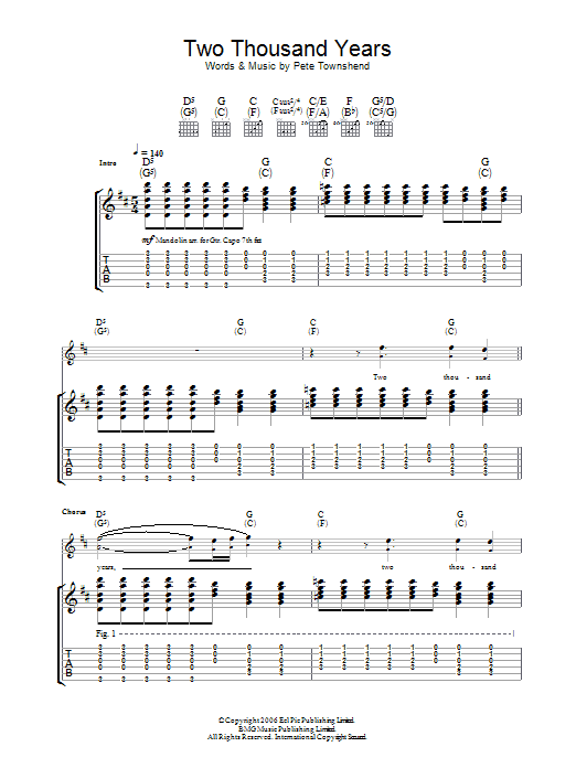 Download or print The Who Two Thousand Years sheet music, chords and digital score arranged for Guitar Tab. This Rock score includes 4 page(s).