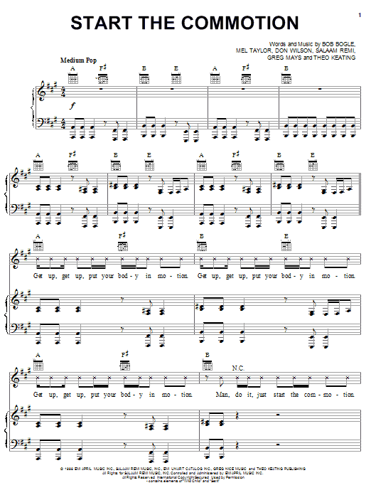 Download or print The Wiseguys Start The Commotion sheet music, chords and digital score arranged for Piano, Vocal & Guitar Chords (Right-Hand Melody). This New Age score includes 7 page(s).