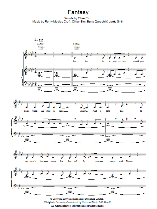 Download or print The XX Fantasy sheet music, chords and digital score arranged for Piano, Vocal & Guitar Chords. This Alternative score includes 3 page(s).