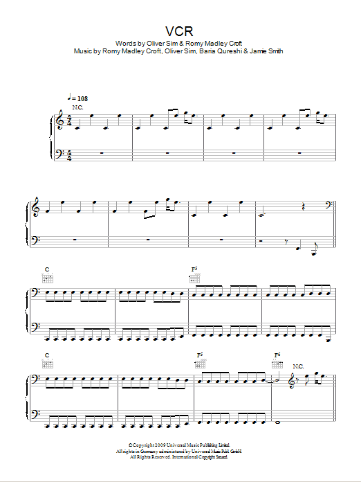 Download or print The XX VCR sheet music, chords and digital score arranged for Piano, Vocal & Guitar Chords. This Alternative score includes 4 page(s).