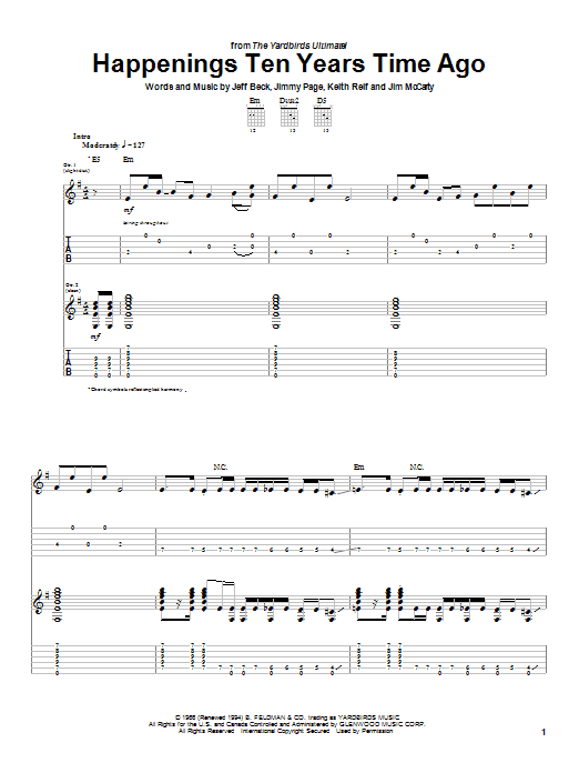Download or print The Yardbirds Happenings Ten Years Time Ago sheet music, chords and digital score arranged for Guitar Tab. This Rock score includes 7 page(s).