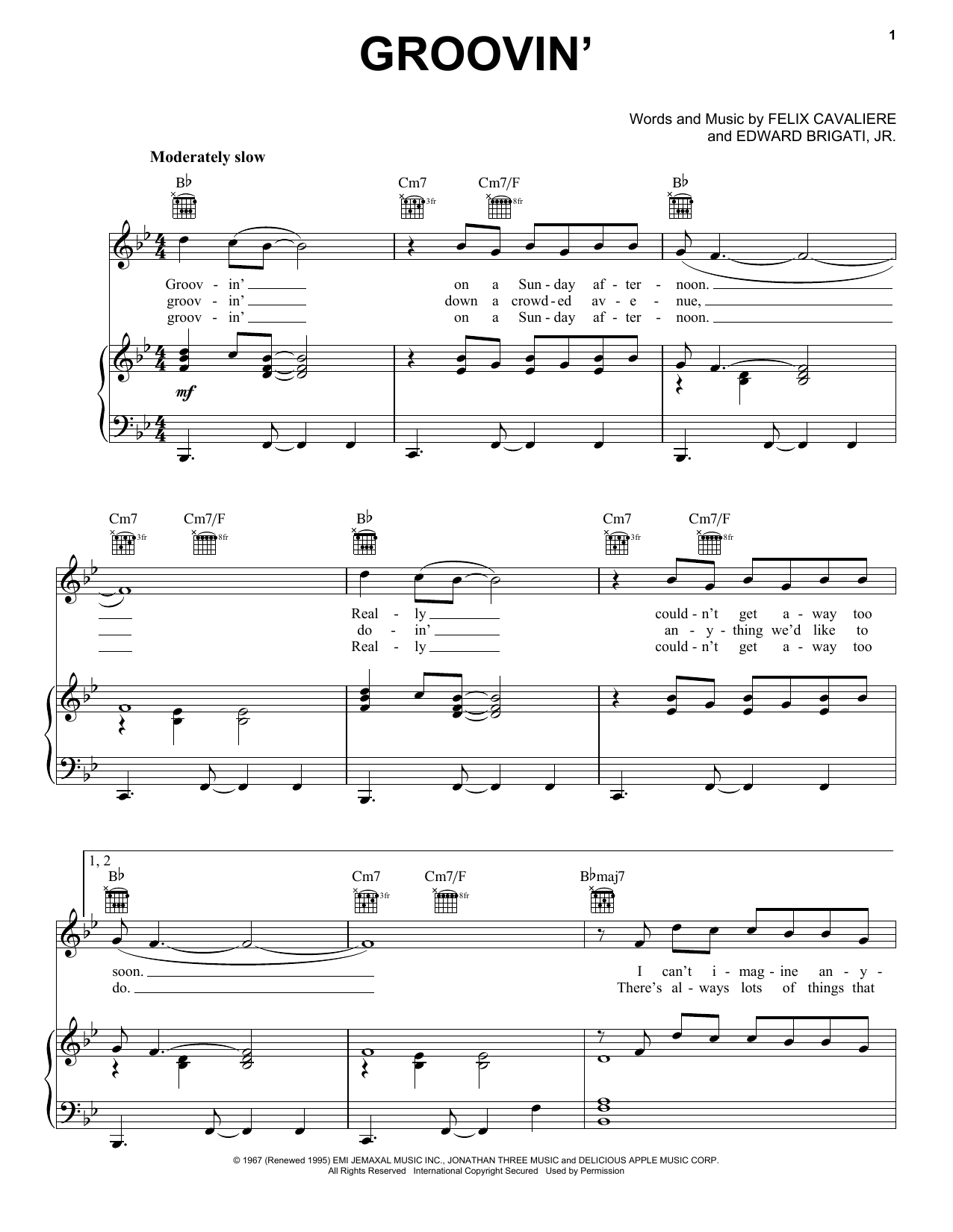 Download or print The Young Rascals Groovin' sheet music, chords and digital score arranged for Guitar Chords/Lyrics. This Pop score includes 2 page(s).