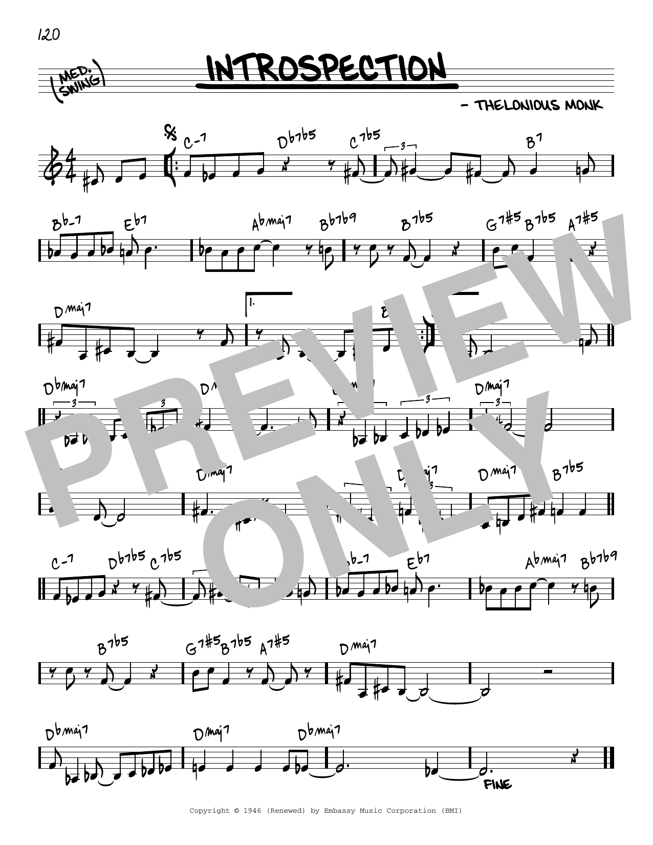 Download or print Thelonious Monk Introspection sheet music, chords and digital score arranged for Real Book – Melody & Chords. This Jazz score includes 1 page(s).