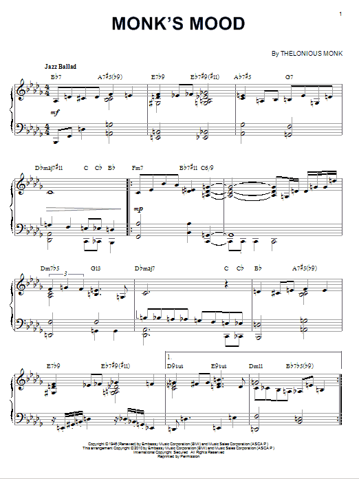 Quick facts Monk's Mood (arr. Brent Edstrom) about digital sheet music