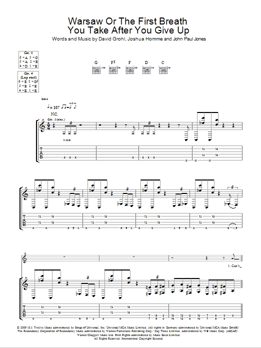 Download or print Them Crooked Vultures Warsaw Or The First Breath You Take After You Give Up sheet music, chords and digital score arranged for Guitar Tab. This Metal score includes 19 page(s).
