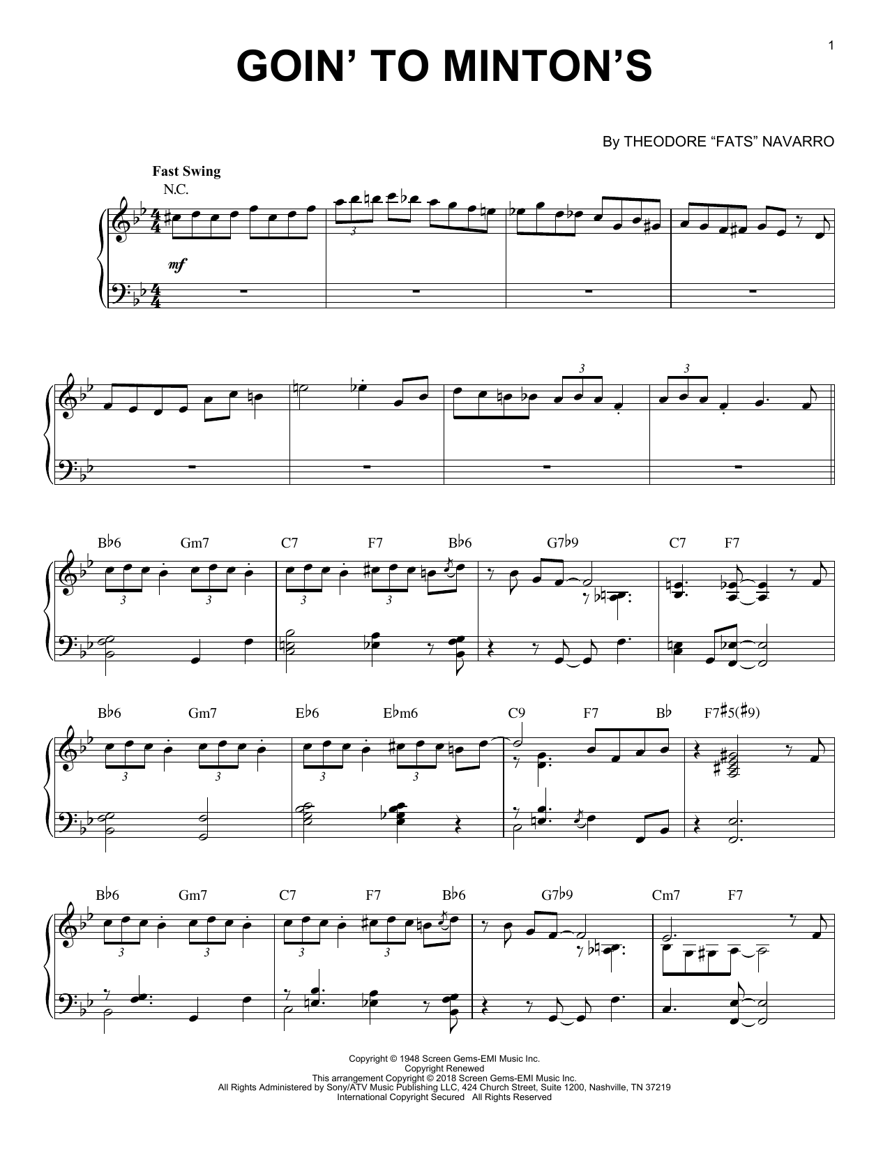 Download or print Theodore "Fats" Navarro Goin' To Minton's sheet music, chords and digital score arranged for Piano Solo. This Jazz score includes 4 page(s).