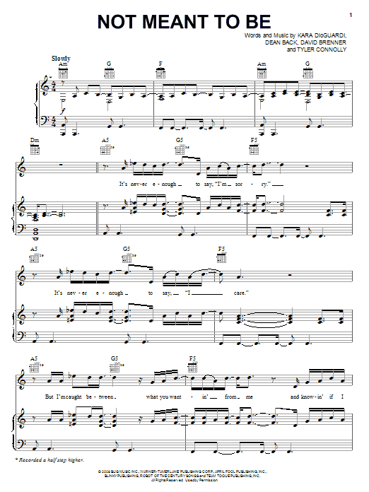 Download or print Theory Of A Deadman Not Meant To Be sheet music, chords and digital score arranged for Piano, Vocal & Guitar Chords (Right-Hand Melody). This Pop score includes 6 page(s).