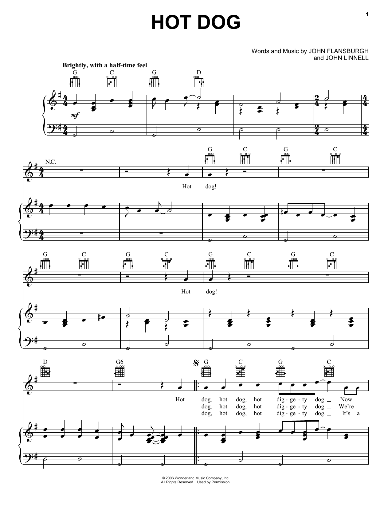 Download or print They Might Be Giants Hot Dog! (from Mickey Mouse Clubhouse) sheet music, chords and digital score arranged for Super Easy Piano. This Children score includes 1 page(s).