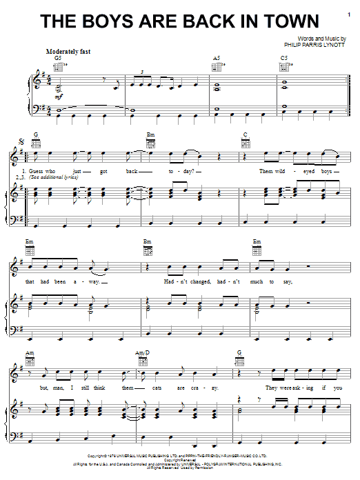 Quick facts The Boys Are Back In Town about digital sheet music