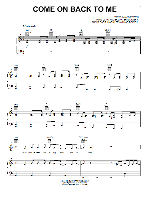 Download or print Third Day Come On Back To Me sheet music, chords and digital score arranged for Easy Guitar Tab. This Christian score includes 6 page(s).