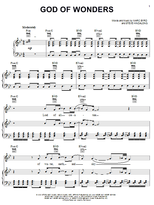 Download or print Third Day God Of Wonders sheet music, chords and digital score arranged for Piano & Vocal. This Christian score includes 9 page(s).