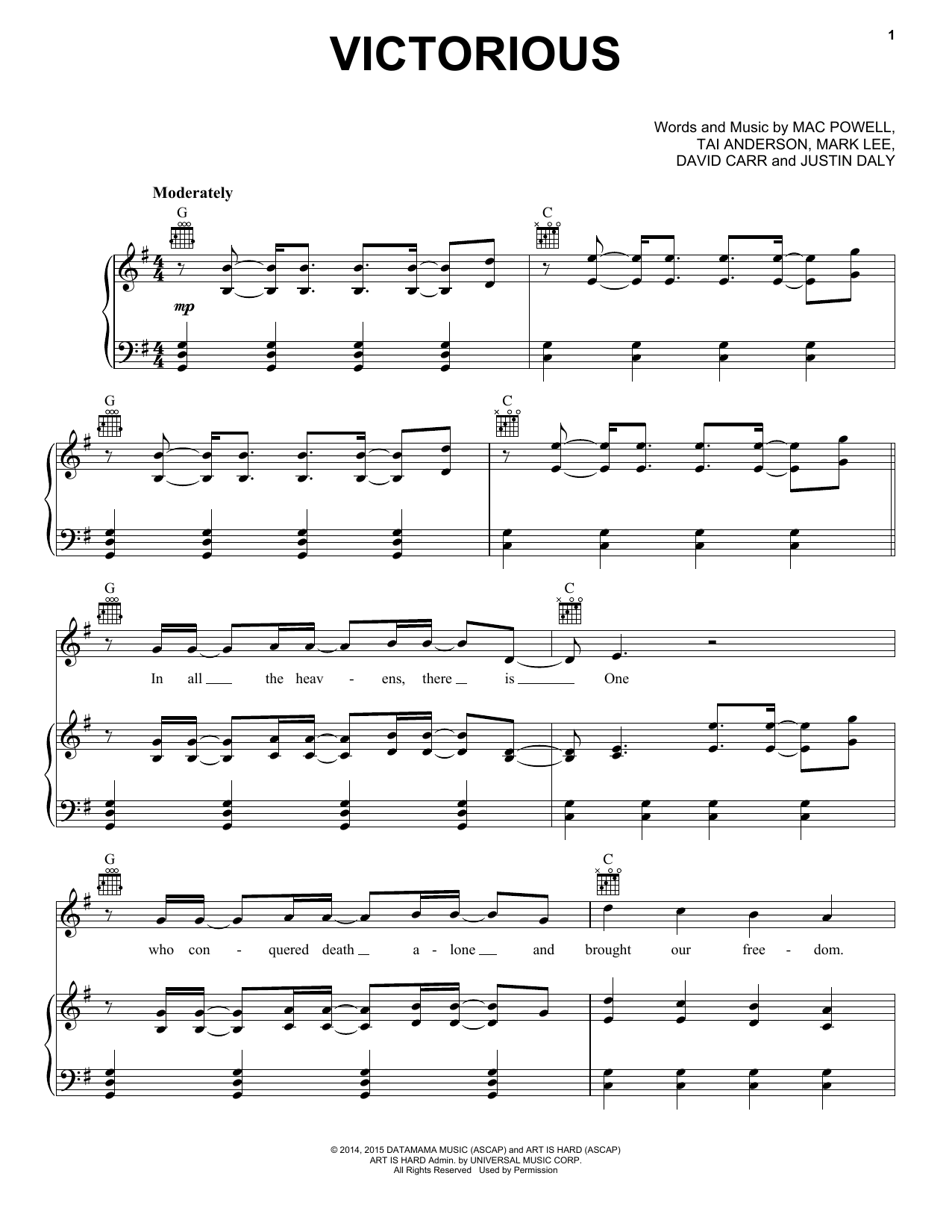 Download or print Third Day Victorious sheet music, chords and digital score arranged for Piano, Vocal & Guitar Chords (Right-Hand Melody). This Christian score includes 7 page(s).
