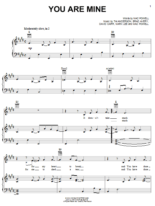 Download or print Third Day You Are Mine sheet music, chords and digital score arranged for Piano, Vocal & Guitar Chords (Right-Hand Melody). This Christian score includes 7 page(s).