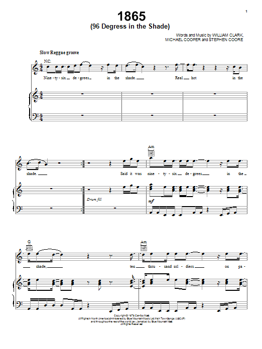 Download or print Third World 1865 (96 Degrees In The Shade) sheet music, chords and digital score arranged for Piano, Vocal & Guitar Chords (Right-Hand Melody). This Reggae score includes 6 page(s).