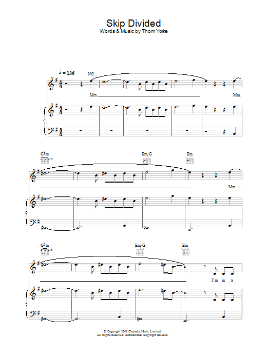 Download or print Thom Yorke Skip Divided sheet music, chords and digital score arranged for Piano, Vocal & Guitar Chords. This Alternative score includes 6 page(s).