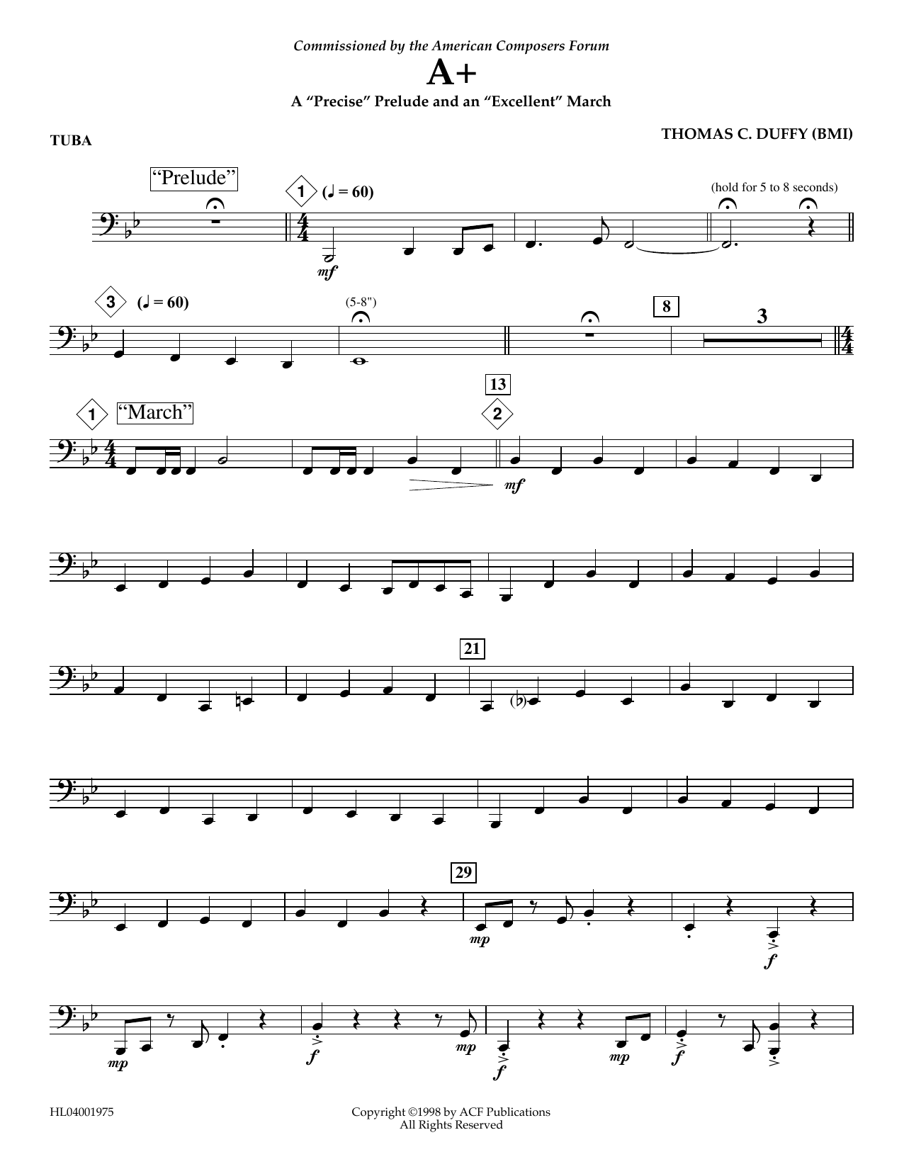 Download or print Thomas Duffy A+: A "Precise" Prelude and an "Excellent" March - Tuba sheet music, chords and digital score arranged for Concert Band. This Concert score includes 2 page(s).