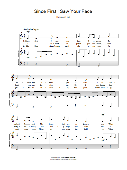 Download or print Thomas Ford Since First I Saw Your Face sheet music, chords and digital score arranged for Piano & Vocal. This Renaissance score includes 1 page(s).