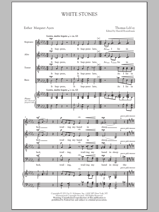 Download or print Harold Rosenbaum White Stones sheet music, chords and digital score arranged for SATB Choir. This Contemporary score includes 11 page(s).