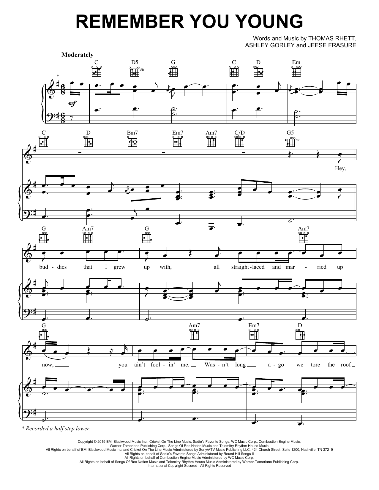 Download or print Thomas Rhett Remember You Young sheet music, chords and digital score arranged for Piano, Vocal & Guitar Chords (Right-Hand Melody). This Pop score includes 6 page(s).