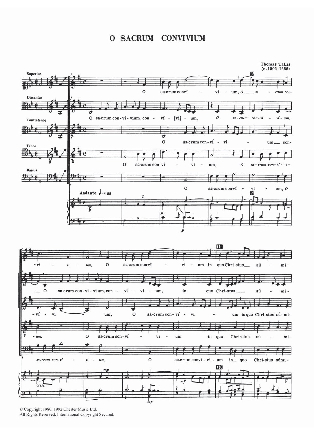 Download or print Thomas Tallis O Sacrum Convivium sheet music, chords and digital score arranged for Piano, Vocal & Guitar Chords. This Classical score includes 5 page(s).
