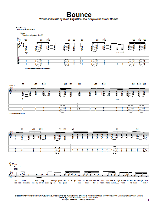 Download or print Thousand Foot Krutch Bounce sheet music, chords and digital score arranged for Guitar Tab. This Christian score includes 9 page(s).