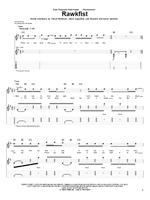 Download or print Thousand Foot Krutch Rawkfist sheet music, chords and digital score arranged for Guitar Tab. This Christian score includes 5 page(s).