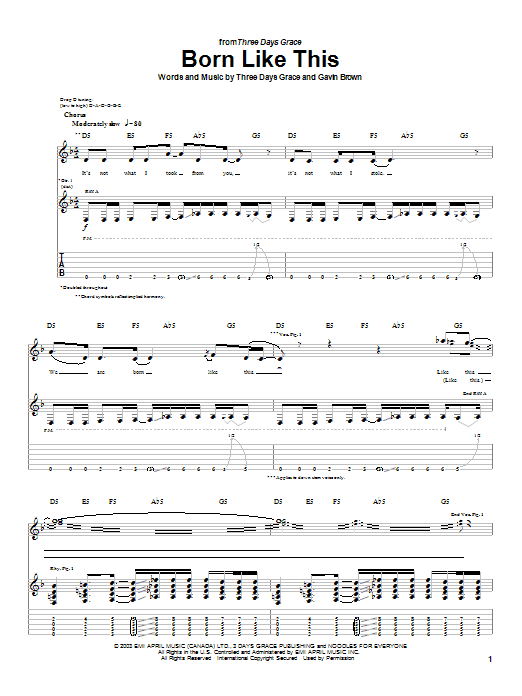 Download or print Three Days Grace Born Like This sheet music, chords and digital score arranged for Guitar Tab. This Rock score includes 4 page(s).